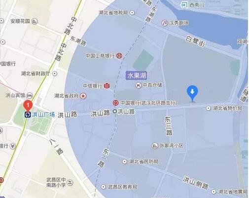 洪山廣場站(紅點)與湖北省委(藍(lán)點)