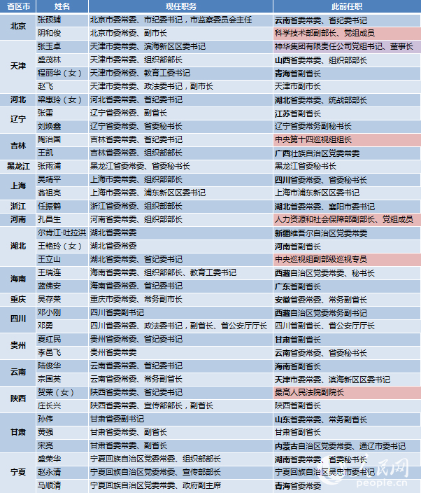 表:2017一季度新到任省級(jí)黨委常委一覽
