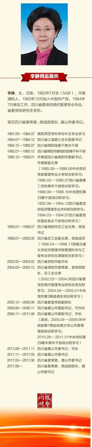 李靜任四川省委統(tǒng)戰(zhàn)部部長 四川新一屆省委常委班子成員及職務(wù)情況