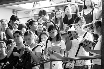 在網(wǎng)絡(luò)作家“南派三叔”的簽售會現(xiàn)場,眾多讀者專程趕來排隊等待簽售。光明圖片/視覺中國