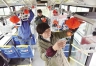 “春節(jié)即將到了,為了增加公交車的年味,該車隊在65輛城鄉(xiāng)公交車上都掛上了紅燈籠,在玻璃上貼上窗花,營造良好的春節(jié)氣氛。”車隊隊長盛宗林介紹說。(鐘成 邵勤旦 攝)