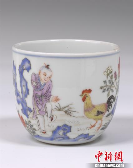 乾隆粉彩拳石牡丹詩文雞缸杯。國家博物館供圖