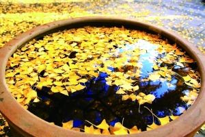 石景山八大處的銀杏樹主要分布在寺廟內(nèi),大多為百年以上的古樹,在二處靈光寺的佛牙塔東南側(cè)有一棵明代的古銀杏,四處大悲寺大雄寶殿前有兩棵樹齡在800年以上的元代古銀杏,在六處香界寺的山門西側(cè)有一棵明代的古銀杏。10月下旬開始黃葉紛落滿地碎金。靈光寺內(nèi)銀杏樹枝繁葉茂,觀音殿前、佛牙舍利塔前的銀杏樹也是一片金黃。