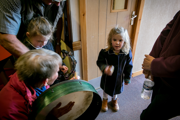 參與打節(jié)拍的小女孩和指導(dǎo)她的老奶奶