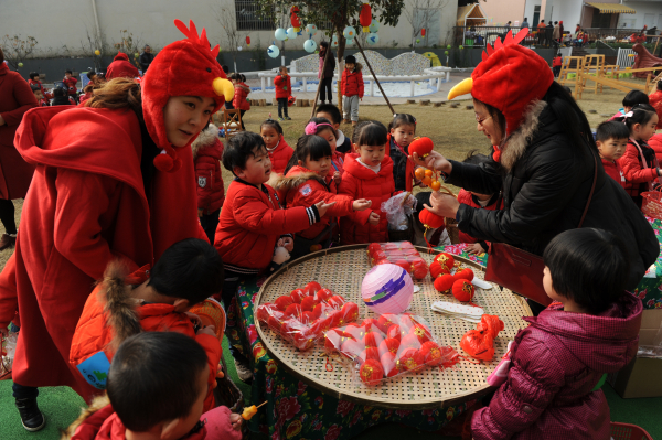 1月10日,東陽(yáng)市第二實(shí)驗(yàn)幼兒園舉行“金雞報(bào)春 萌娃購(gòu)年貨”活動(dòng),邀請(qǐng)傳統(tǒng)的打麻糍,做豆腐的師傅現(xiàn)場(chǎng)制作各類傳統(tǒng)“年貨”,讓孩子們參與購(gòu)買,從中了解傳統(tǒng)年俗。( 攝)