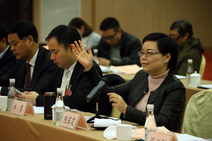 省政協(xié)委員陳露霞在聯(lián)組討論時(shí)舉手 浙江在線記者 吳煌 攝