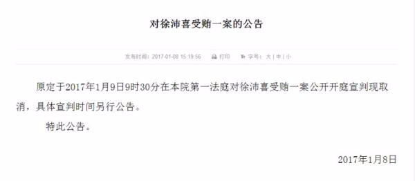 大通區(qū)法院取消原定于2017年1月9日徐沛喜案宣判的公告。 大通區(qū)法院官網(wǎng) 圖