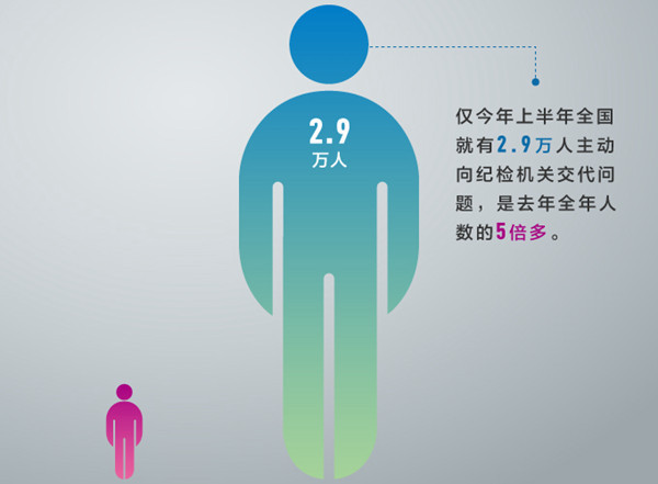 寬嚴(yán)相濟帶來了廣大黨員干部相信組織、依靠組織的可喜變化。僅今年上半年全國就有2.9萬人主動向紀(jì)檢機關(guān)交代問題,是去年全年人數(shù)的5倍多。