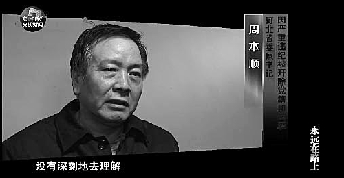 周本順在電視專題片《永遠(yuǎn)在路上》中出鏡悔罪 資料圖片