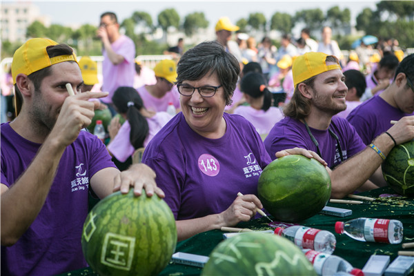 雕刻瓜燈吸引了外國友人前來參與。