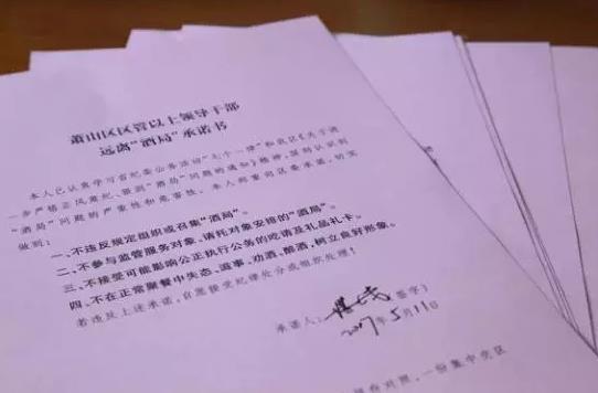 5月1日,蕭山區(qū)委下發(fā)了一份文件,對(duì)"酒局"問題堅(jiān)決說不,包括黨員干部違反規(guī)定組織或召集"酒局",參與監(jiān)管服務(wù)對(duì)象、請(qǐng)托對(duì)象安排的"酒局",接受可能影響公正執(zhí)行公務(wù)的吃請(qǐng)及禮品禮卡,在正常聚餐中失態(tài)、滋事、勸酒、醉酒。