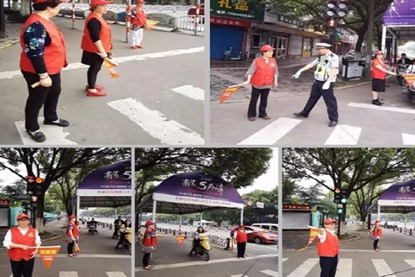 一顆公益心,一份愛黨情,海寧銀齡志愿隊(duì)爭當(dāng)文明出行勸導(dǎo)員。來源:大潮網(wǎng)