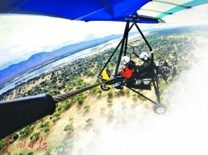 張廣瑞開飛機在空中巡視大草原。