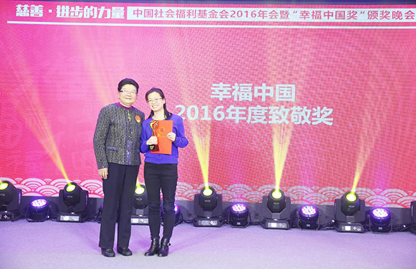 顧秀蓮為愛心企業(yè)頒發(fā)幸福中國·2016年度愛心企業(yè)獎