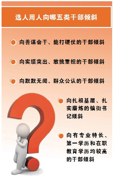 為樹(shù)立敢于擔(dān)當(dāng)、實(shí)績(jī)突出、群眾公認(rèn)、重視基層的用人導(dǎo)向,該市注重啟用攻堅(jiān)一線(xiàn)干部,提出在同等條件下,向五類(lèi)干部?jī)A斜:向善謀會(huì)干、能打硬仗的干部?jī)A斜;向?qū)嵖?jī)突出、敢挑重?fù)?dān)的干部?jī)A斜;向默默無(wú)聞、群眾公認(rèn)的干部?jī)A斜;向扎根基層、扎實(shí)磨煉的鎮(zhèn)街書(shū)記傾斜;向有專(zhuān)業(yè)特長(zhǎng)、第一學(xué)歷和在職教育學(xué)歷均較高的干部?jī)A斜。在這次提任的135名縣級(jí)班子人選中,現(xiàn)任或擔(dān)任過(guò)鄉(xiāng)鎮(zhèn)(街道)正職的有109名,占比80%以上。