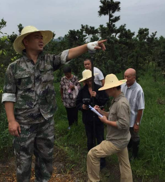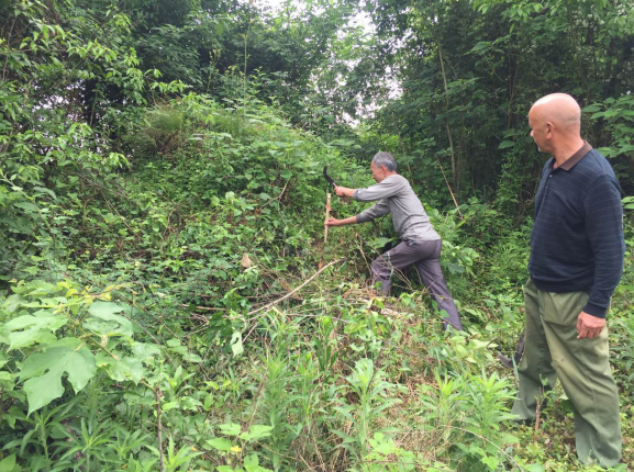 他們穿著膠鞋,不顧蚊蟲叮咬,一路披荊斬棘,踏開一條小徑,來到指定地點(diǎn)?!?quot;雖然長(zhǎng)滿了雜草但是我還是認(rèn)得。"只見另一個(gè)干部大步跨向前,不顧身邊的刺藤,把竹標(biāo)深深地打在了地上。