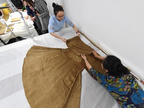 2008年才建立的這個紡織考古實驗室就在社科院考古所的后樓里,幾間屋子并不大,她和她的弟子們就在這略顯逼仄的空間里,同時進行著江西明代寧靖王夫人吳氏墓服飾修復(fù)、江西贛州慈云寺塔出土繪畫、遼寧葉茂臺遼墓紡織品文物修復(fù)等工作。經(jīng)年累月才復(fù)原出的那幾件令人驚艷的湖北江陵馬山一號楚墓的棉袍也在這里展示著,越來越多的人到這里參觀,越來越多的孩子想跟著她學(xué)習(xí)紡織考古。