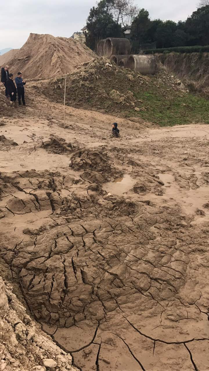 據(jù)了解,這是一處由魚塘改造成的砂石場(chǎng)。岸邊一些熟悉情況的村民說,泥漿厚度超過2米,就是一個(gè)成年人陷下去也危險(xiǎn)。