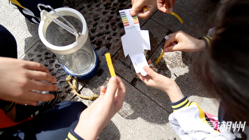 近日,王元玲又帶著學(xué)生來到了狀元街,調(diào)查這條曾經(jīng)觀測(cè)過的市河。取水采樣,觀測(cè)水體的渾濁度、肉眼可見物,測(cè)試ph值……