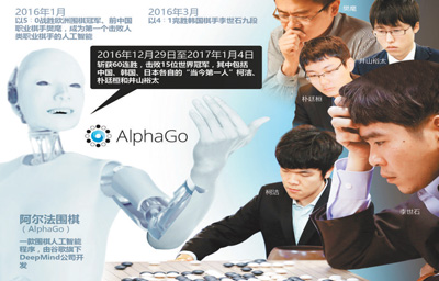 2017年1月5日,Master(后承認(rèn)是Alpha Go)在網(wǎng)絡(luò)上取得對包括柯潔、樸廷桓和井山裕太在內(nèi)中日韓頂級高手的快棋60連勝。
