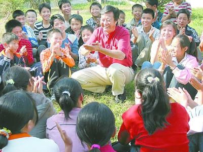 徐榮耀在松木坪中學(xué)給學(xué)生講傳統(tǒng)故事。資料圖片