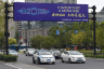 8月27日,在杭州市西湖南山路,一個(gè)小朋友騎車從G20宣傳畫前經(jīng)過。