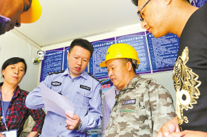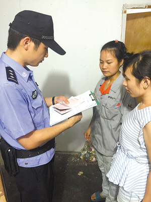 民警到企業(yè)為外來(lái)務(wù)工人員登記居住信息。