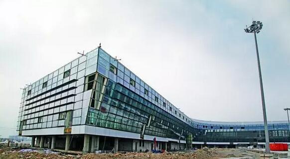 昨天下午,記者在T2航站樓工程施工現(xiàn)場(chǎng)看到,鋼結(jié)構(gòu)頂部已經(jīng)"蓋"上特制屋頂,新建航站樓朝向飛行區(qū)一側(cè)的玻璃幕墻基本完成,21個(gè)近機(jī)位口清晰可見。而新建航站樓墻面的另一側(cè),玻璃幕墻仍在安裝中。據(jù)悉,航站樓屋面由玻璃幕墻、鋁復(fù)合板、石材等構(gòu)成,其中玻璃幕墻的安裝面積占比最大,預(yù)計(jì)玻璃幕墻的安裝可于3月下旬完成。