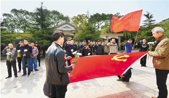 4月1日,舟山市定海區(qū)金塘島上40余名黨員與金塘市場(chǎng)監(jiān)管分局的工作人員一起,在金塘島東風(fēng)嶺烈士陵園悼念革命先烈?!∫Ψ濉z