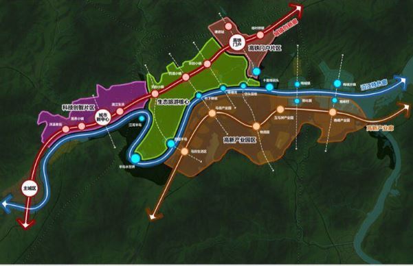 據(jù)規(guī)劃,高鐵新區(qū)占地面積為105平方公里,東起十里埠綜合作業(yè)碼頭,西至清溪翠谷,南至馬南高新園,北至杭黃高鐵沿線,橫跨了高鐵沿線的洋溪街道、下涯鎮(zhèn)、楊村橋鎮(zhèn)等四大要鎮(zhèn)。