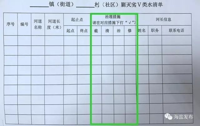這是剿滅劣Ⅴ類水清單,與以往的治水清單不同,這次增加了"治理措施"這一欄。根據(jù)河道污染原因的不同,"一河一方案"地采取"截、清、治、修"等不同措施。