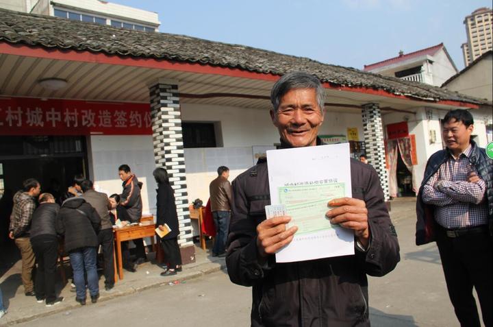 村民黃金塘領到117225元拆遷款,喜笑顏開