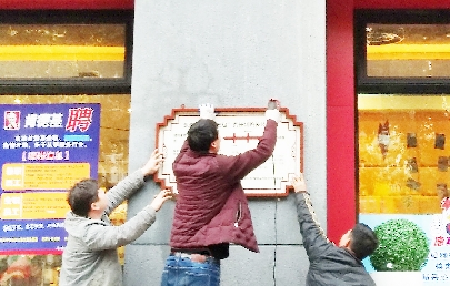文明創(chuàng)建活動(dòng)中,工作人員釘掛路長(zhǎng)牌。通訊員 溫泉 攝