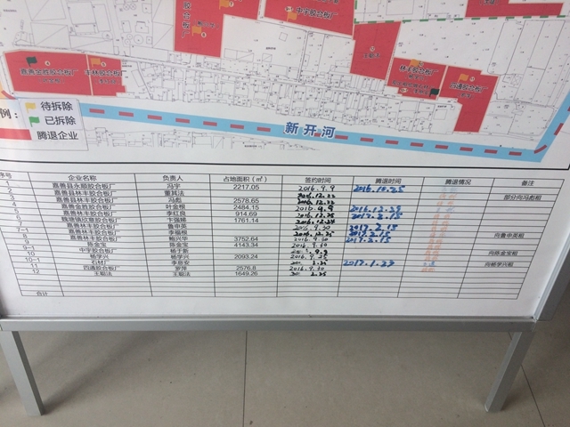 騰退,勢在必行。魏塘街道迅速出擊,發(fā)動企業(yè)主體,村級配合實施,街道發(fā)力推動,縣級部門聯(lián)掛助力,以雷霆之速,推進騰退工作??h、街道、村三級聯(lián)動,在南北暑村設(shè)立作戰(zhàn)室,全面摸底,僅花一月時間摸清轄區(qū)企業(yè)分布情況,分區(qū)域形成八張騰退作戰(zhàn)圖。走進南北暑村環(huán)境綜合整治作戰(zhàn)室,只見八張圖一圈排開,將作戰(zhàn)室圍了起來。仔細(xì)查看,每塊圖上詳細(xì)標(biāo)明區(qū)域地塊,大塊紅色標(biāo)出騰退企業(yè)區(qū)域,寫明了各家企業(yè)名稱,圖末貼著一張表格,將企業(yè)負(fù)責(zé)人、占地面積、騰退時間等信息逐一列出。