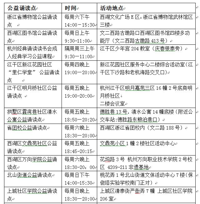 我們所知道的杭城各公益誦讀點(diǎn)(見(jiàn)下表)