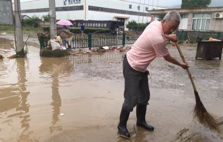 此刻,水已經(jīng)沒過了小腿,搶救時(shí)間十分緊急。嚴(yán)晨浩平時(shí)負(fù)責(zé)統(tǒng)計(jì)村里的孤寡老人信息,哪些家庭需要幫助,他都有印象。敲開老人家門后,嚴(yán)晨浩搬起電視、電冰箱,就往樓上走,“什么東西貴重,我就搬什么?!?/p> 大水退去,三河村村民在街邊大掃除。