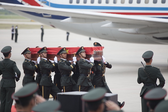 中國軍隊派出軍機,將申亮亮的遺體運回了祖國。飛機落地那天,正好是中國傳統(tǒng)的端午節(jié)。29歲的申亮亮還沒有結(jié)婚,父親母親都是河南地地道道的農(nóng)民。當?shù)匚溲b部派人通知申亮亮家人的時候,他的父親正在地里干活兒,哥哥還在外地打工。