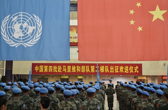 ?。翟拢玻等?,陸軍第16集團軍在長春龍嘉國際機場隆重舉行儀式,歡送中國第四批赴馬里維和部隊第二梯隊啟程。楊再新/攝