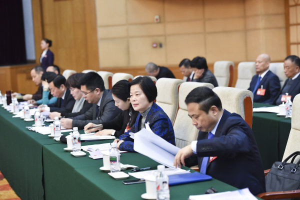 3月7日,我省全國人大代表認(rèn)真審議政府工作報(bào)告。浙江新聞客戶端記者 梁臻 攝
