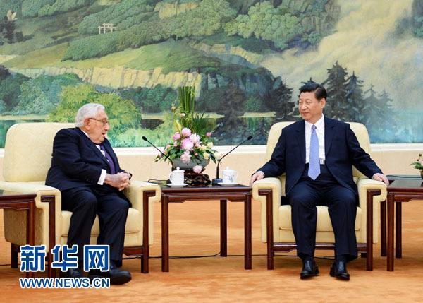 2013年4月24日,習(xí)近平會(huì)見美國前國務(wù)卿基辛格。